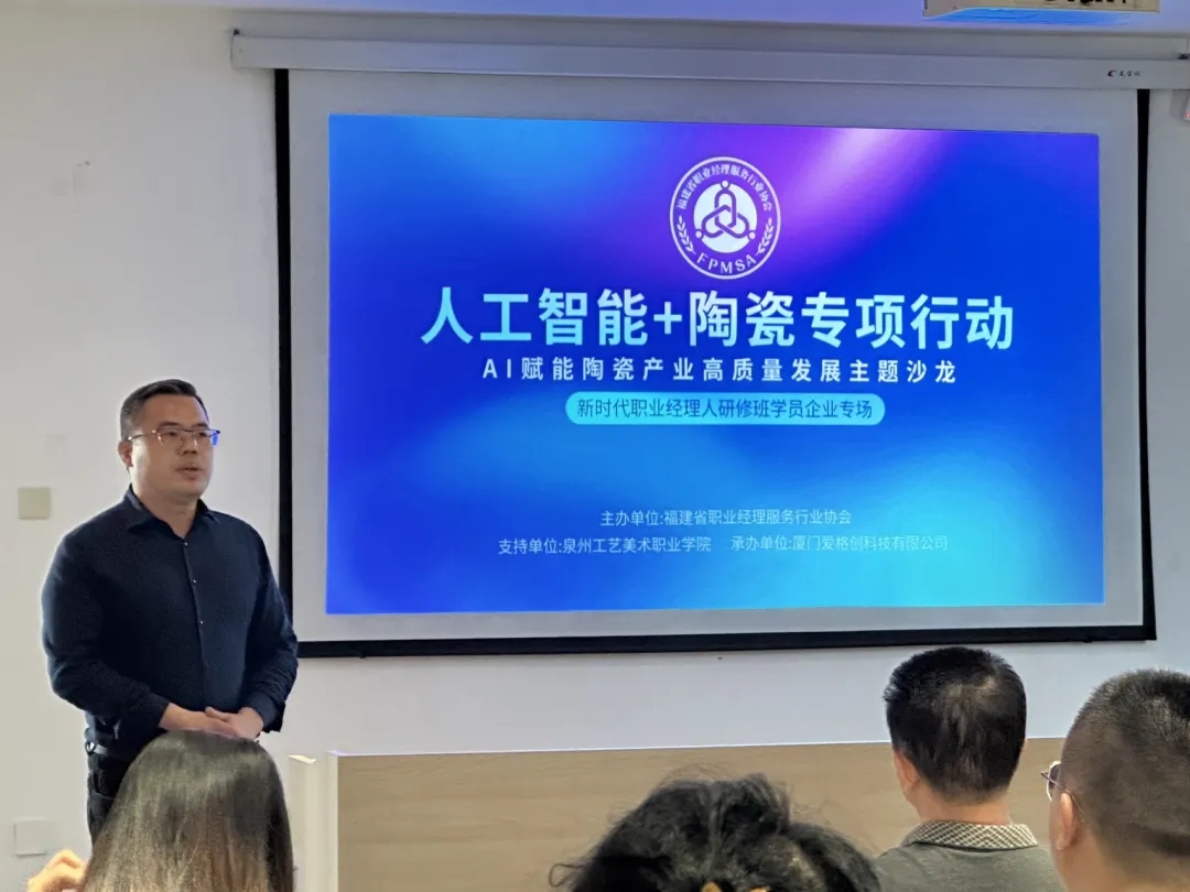 3月29日下午,福建省职业经理服务行业协会在德化县举办“人工智能+陶瓷”专项行动暨AI赋能陶瓷产业高质量发展主题沙龙活动,吸引了众多德化陶瓷行业专家、学者、企业家参加,围绕人工智能在陶瓷产业的应用和发展进行深度探讨。